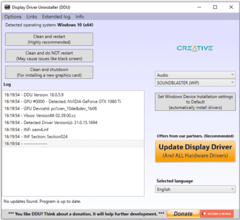 The application will be useful when standard ways of Windows system do not remove drivers or when there are doubts about the thoroughness of cleaning from the remnants. Removes current and previous video drivers from the Device Manager and Windows driver storage. Using the DDU, you can solve many common graphics driver problems. Installing drivers after using the DDU is similar to a "clean" installation.