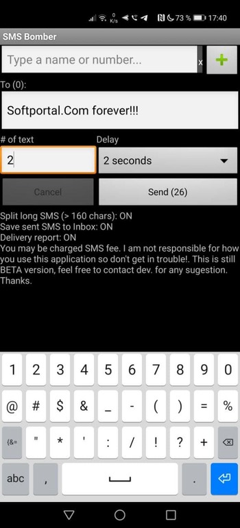 SMS Bomber is a mobile application whose name speaks for itself - it is a real SMS bomber that allows you to literally fill up any numbers with short text messages, transmitting a large number of SMS messages in a short period of time.