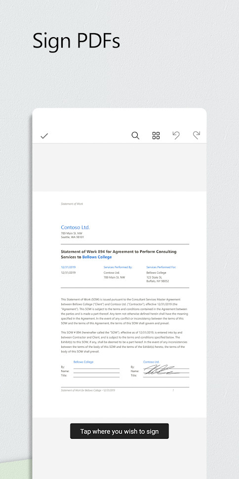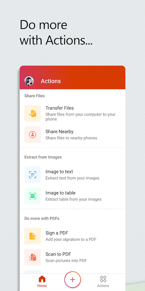 The application provides access to documents that are stored in the OneDrive cloud storage, recently viewed documents on a PC, as well as view and edit Office documents attached to email messages.