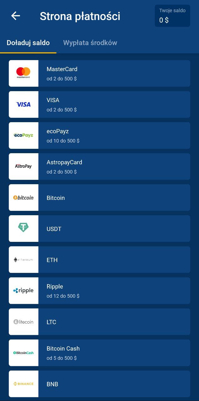 - Wsparcie dla różnych metod płatności, w tym VISA, MasterCard, Perfect Money, BKASH, NAGAD, ROCKET, AstroPay, UPI, Payfix, Papara, HayHay, a także kryptowalut.