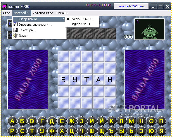 Балда 2000 - компьютерный вариант самой известной народной игры. Можно играть как с компьютером, так и с живым соперником по сети.