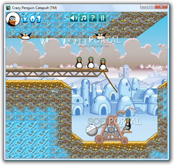 Crazy Penguin Catapult - эта игра не даст вам заскучать. Управляя катапультой, а затем пингвинами, вам придется атаковать белых медведей в различных уголках игрового поля, в том числе в пещерах.