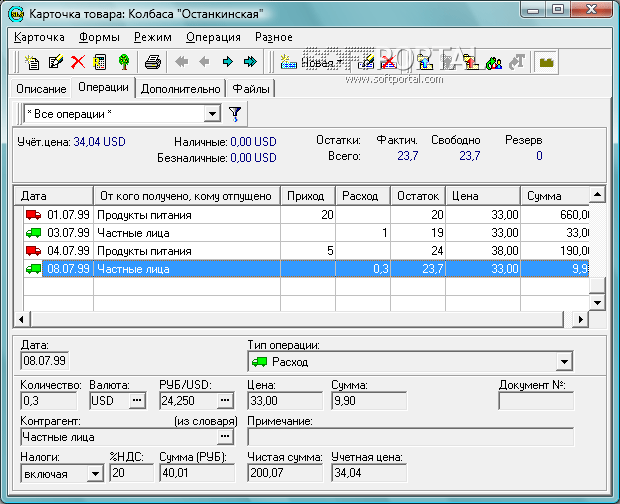 Предназначена для автоматизации небольших розничных, оптовых и оптово-розничных компаний, а также предприятий сферы услуг. Позволяет эффективно работать со справочником товаров, получать товарные отчеты за любой период, по каждому товару видеть историю движения внутри организации, вести словари покупателей/поставщиков и др.