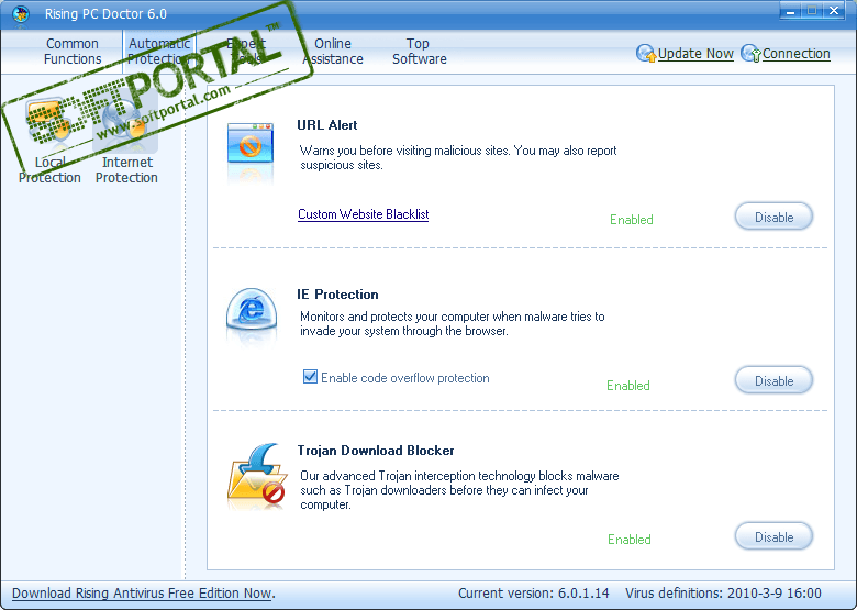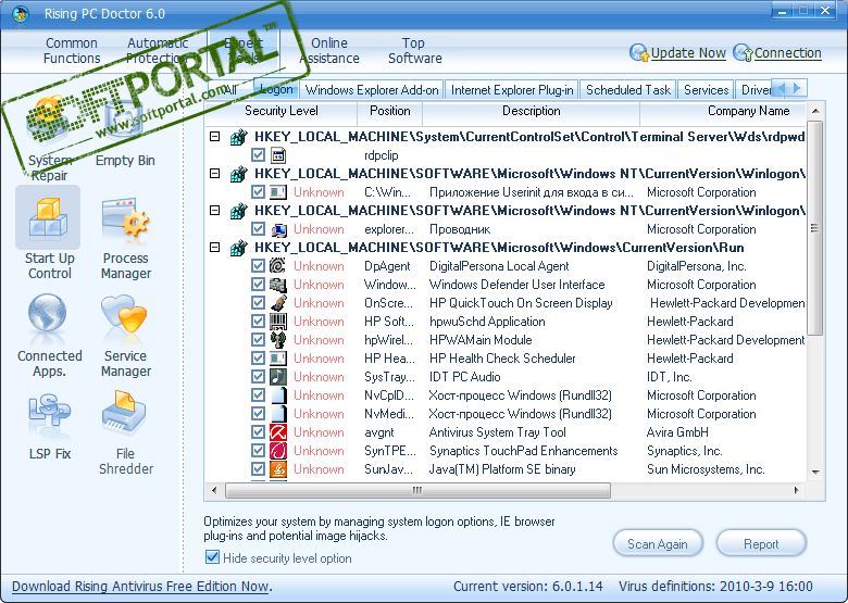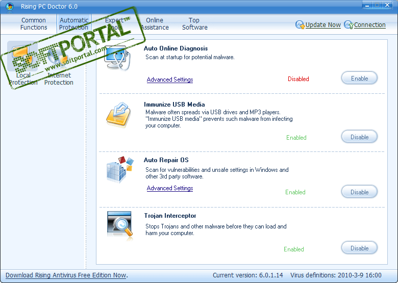 Rising PC Doctor - профессиональная утилита для обеспечения безопасности пользователей ПК. С ее семью ключевыми функциями автоматического анализа вредоносного программного обеспечения, иммунизацией запоминающих устройств USB, восстановления настроек Internet Explorer и Windows, блокировкой троянских загрузок; блокировкой вредоносных вебсайтов, защитой Internet Explorer и блокировкой троянских загрузок, Rising PC Doctor увеличит Вашу защиту против вредителей и киберугроз.