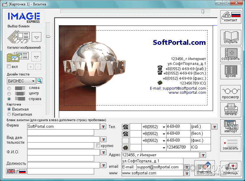 Визитка Дизайн - Программа предназначена для визуального создания печатной формы...