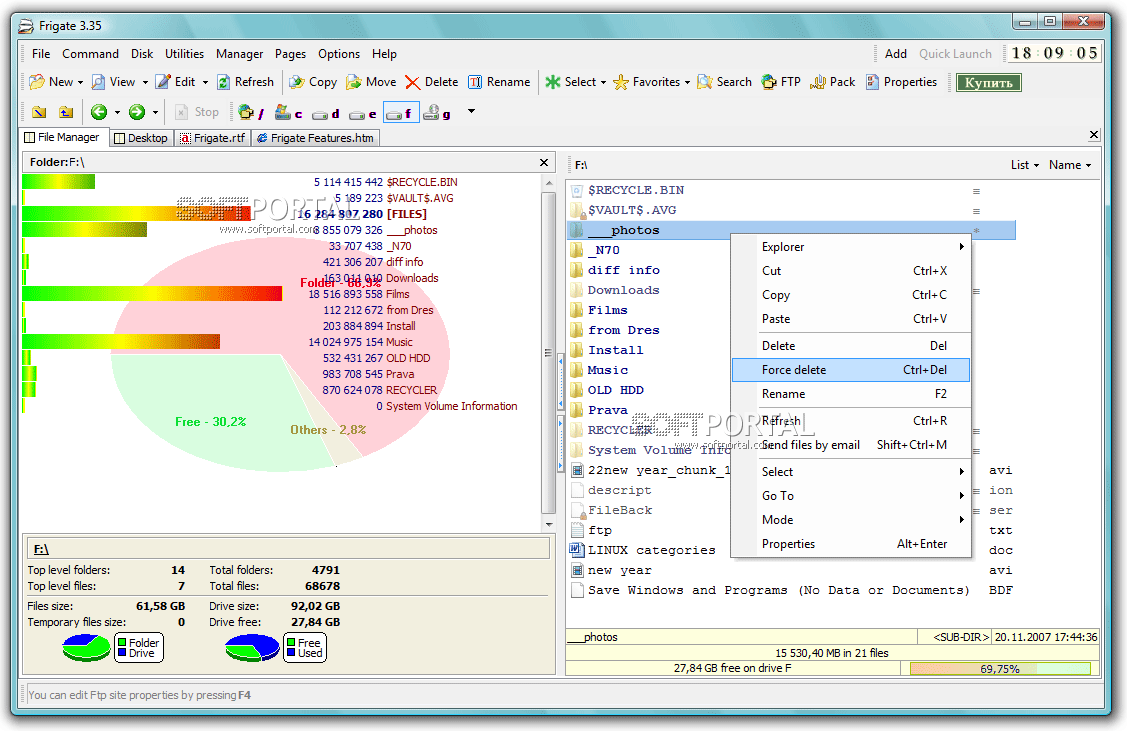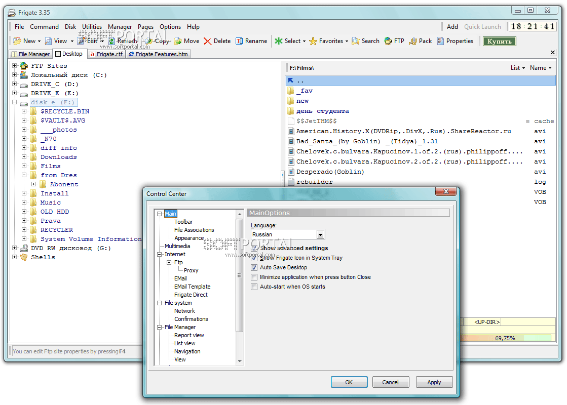 Фрегат - Файловый менеджер, гибко сочетающий высокую функциональность с удобством работы, обладает большим количеством полезных возможностей.