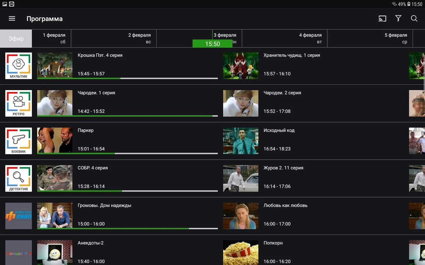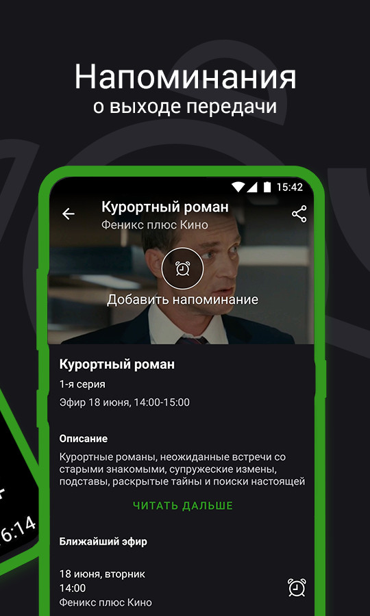 Чтобы не пропустить любимый сериал или передачу вы можете прямо из телепрограммы создать напоминание в стандартном календаре коммуникатора. Поддерживается функция "картинка-в-картинке", Android TV, передача видео по Chromecast, Miracast, WiDi, мобильные сети 3G, LTE, Wi-Fi, WiMAX.