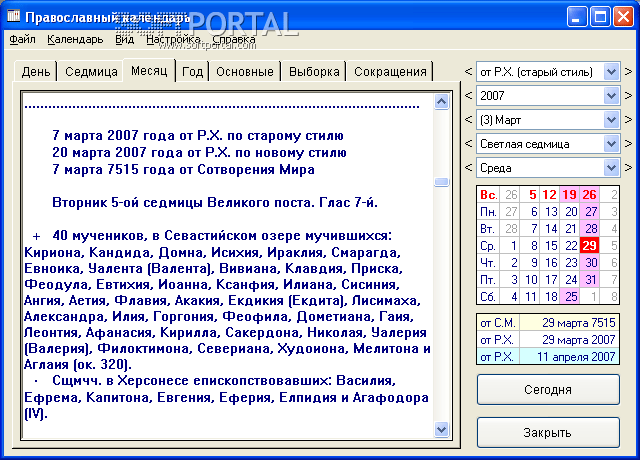 Православный календарь - В программе реализован алгоритмический подход к формированию...