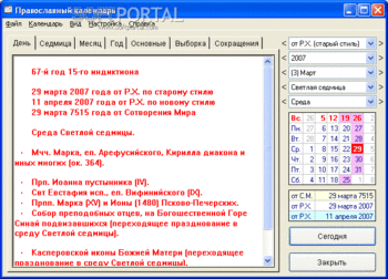 Православный Календарь - календарь опpеделяет даты по Гpигоpианскому и Юлианскому...