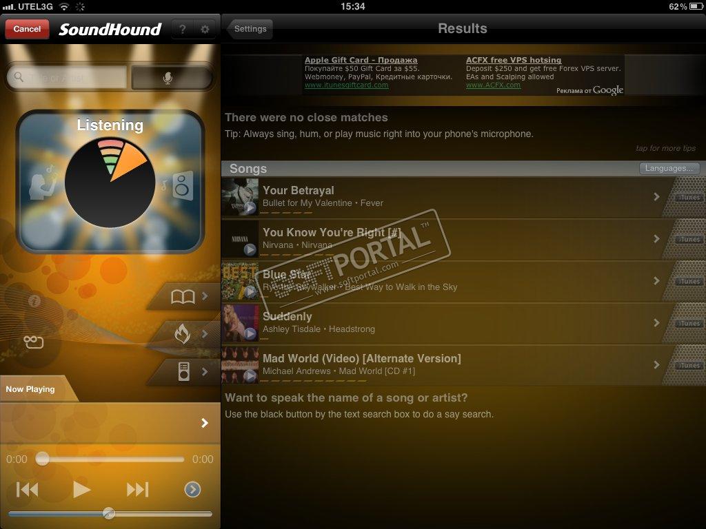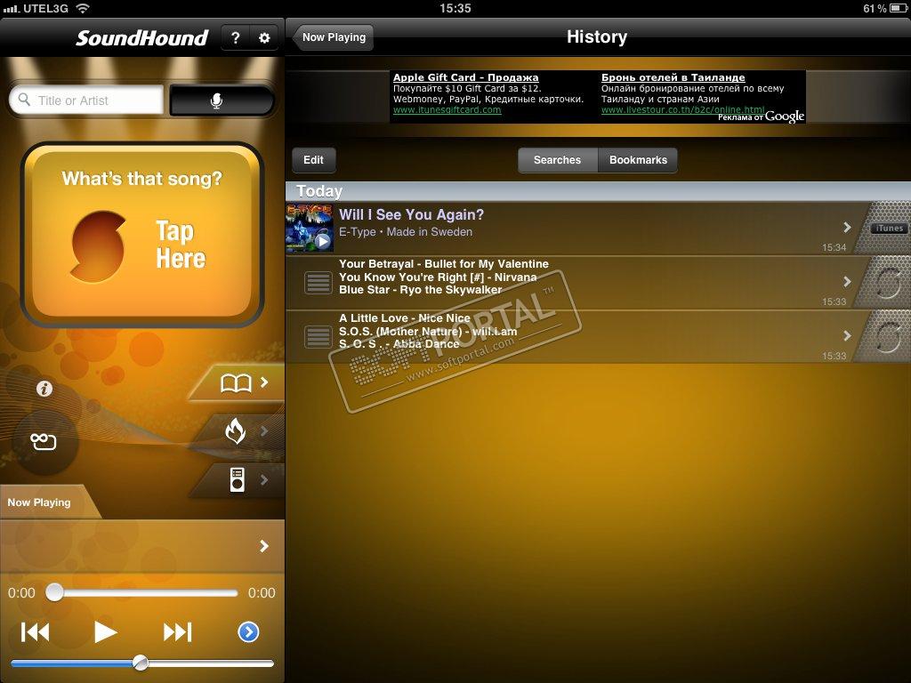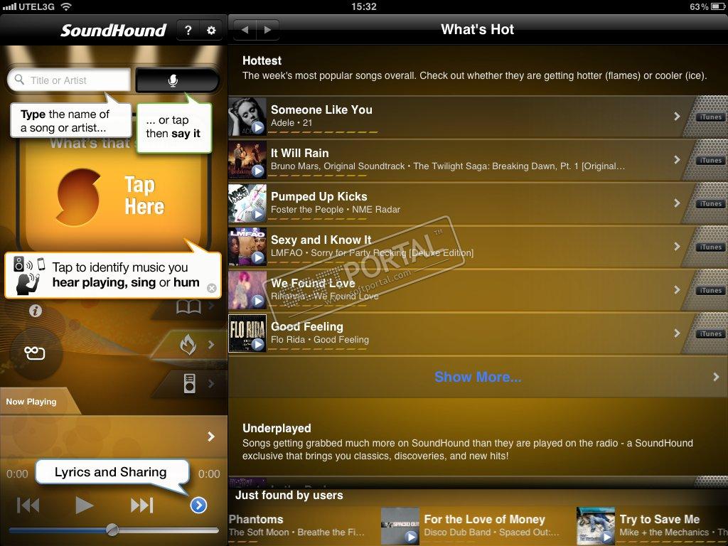 SoundHound - небольшая программа, позволяющая определить название песни, ее исполнителя по части воспроизводимого фрагмента аудио файла. Достаточно поднести микрофон смартфона или планшета к источнику музыки и программа определит исполнителя, название песни или название альбома. Возможности программы позволяют находить слова песен, видеоролики.