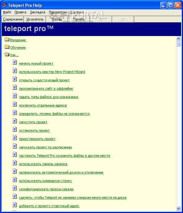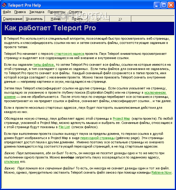 Перевод справочного файла для Teleport Pro для Windows