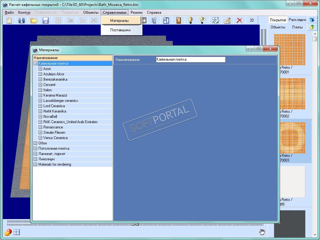 - "время на создание проекта уходит гораздо меньше..." Чушь собачья. Работа в Кафеле гораздо более простая и доступная большинству обычных продавцов в магазинах плитки. А вот с Керамиком действительно придется заморочиться. Без определенной подготовки и навыков, с Керамиком не просто работать. Это приходится постоянно слышать от продавцов магазинов, где используют обе программы.