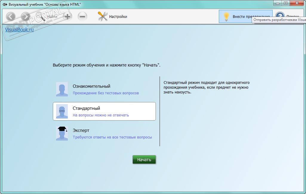 - 3 режима обучения: Ознакомительный, Стандартный и Эксперт.