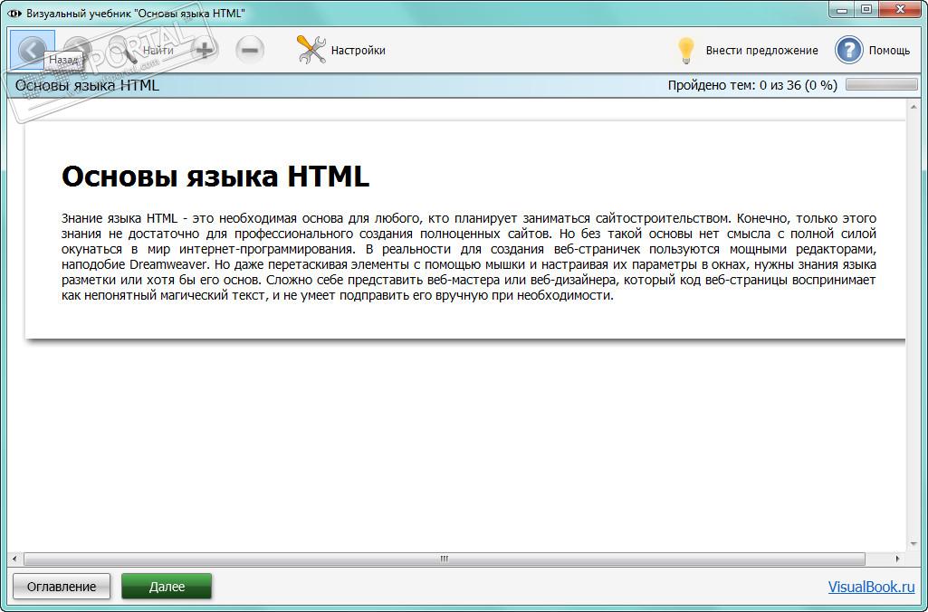 Визуальный учебник "Основы языка HTML" - учебник по основам создания сайтов. Представляет собой приложение из серии визуальных учебников - обучающей программы, отличительной особенностью которой является графическое представление информации с помощью карт знаний (интеллект-карт).