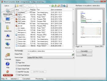 Word Converter - простая в эксплуатации утилита для конвертации практически всех популярных офисных документов, как например DOCX, DOC, PDF, TXT, RTF, CSS, HTM, HTML, BMP, JPG, JPEG, PNG, GIF, WMF и TIF. Программа отличается высокой скоростью преобразования и качеством готовых файлов, присутствует поддержка защищенных PDF-файлов, работает с MS Word 2010, 2007, 2003, 2000, 97 и др.