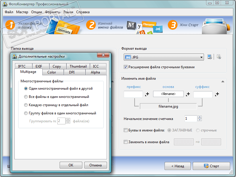 - Передача EXIF, IPTC информации и Альфа-канала.