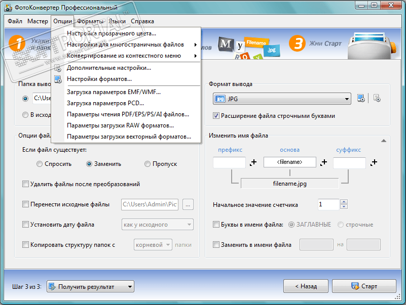 ФотоКонвертер Профессиональный - мощный многофункциональный инструмент, предназначенный для пакетной конвертации и редактирования графических файлов. Поддерживает 500 различных форматов, в том числе PDF, EPS, AI, векторные, устаревшие и редкие форматы изображений.