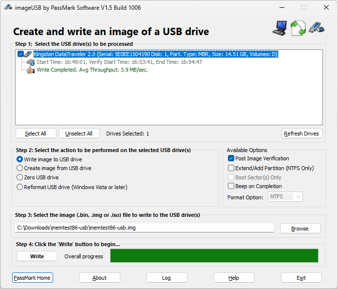 Создание загрузочного USB-носителя MemTest86 в Windows: