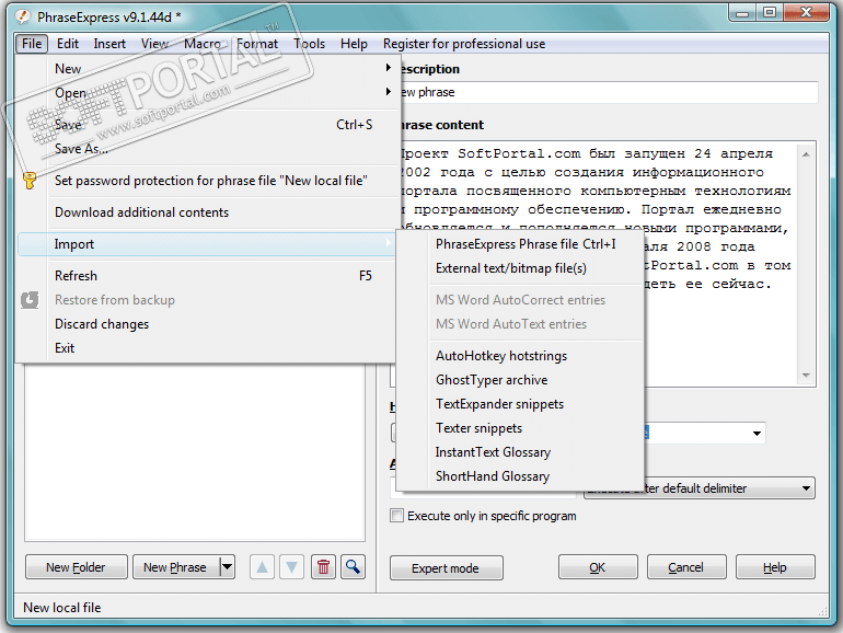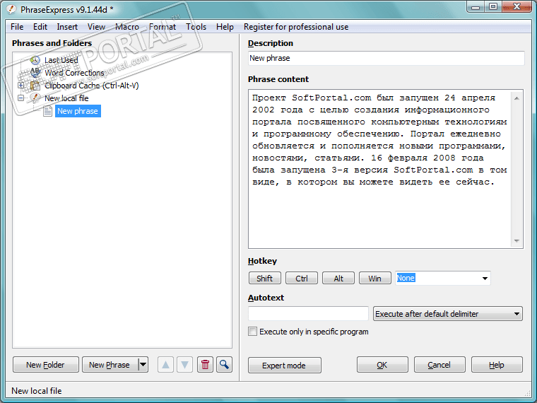 PhraseExpress - полезная программа, которая призвана облегчить пользователю набор текста путем вставки наиболее часто используемых слов или фраз.