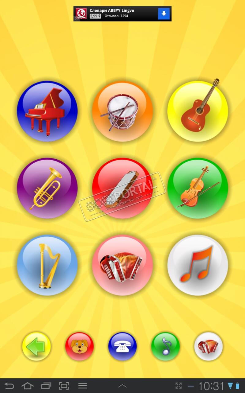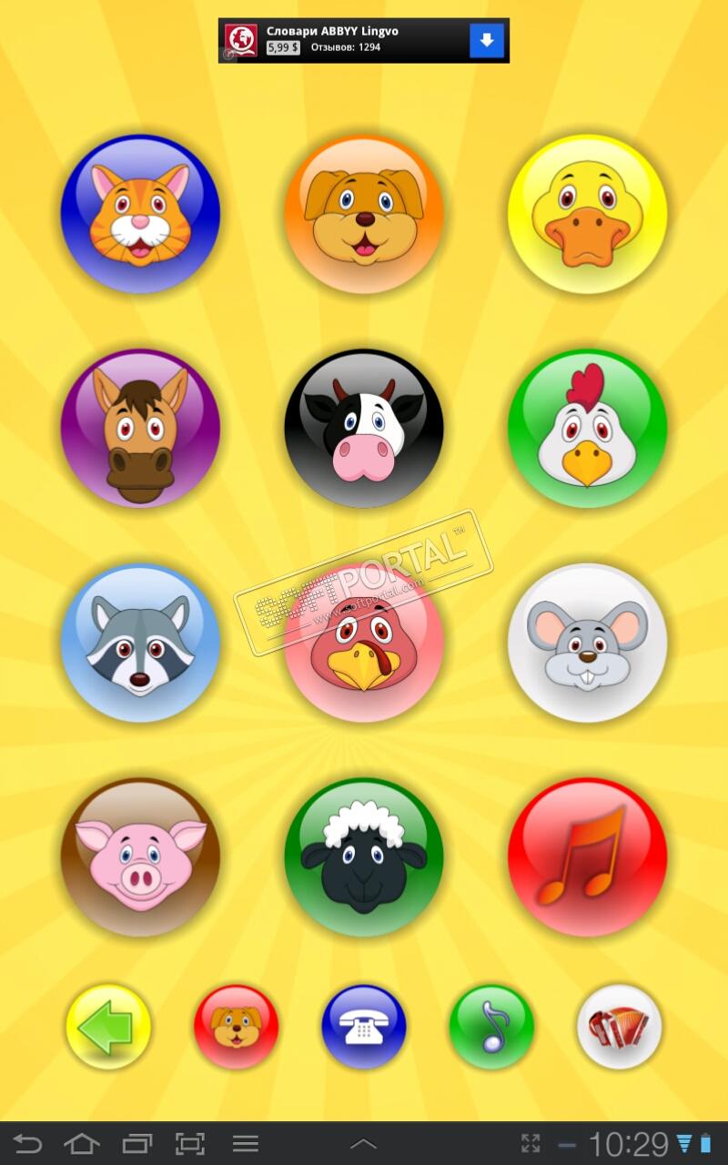 1А: Детский телефон Babyphone - увлекательная музыкальная игрушка-телефон для вашего маленького ребенка. В приложении имеется 4 игровых режима: звуки животных, мобильный телефон, пианино, музыкальные инструменты.