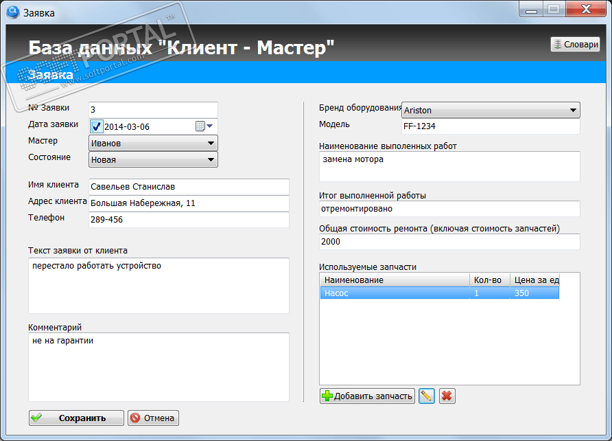 Ремонтная Мастерская - простая в использовании, но достаточно удобная программа для учета работы ремонтной мастерской. С помощью этого приложения легко контролировать поступающие заявки клиентов, их выполнение, а также все расходы/доходы связанные с этим.