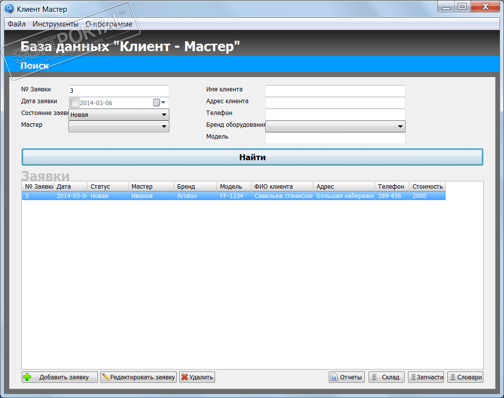 Так же здесь контролируется остаток запчастей на складе. Встроены разнообразные отчеты, позволяющие наглядно отображать или печатать все заявки за определенный период, вычислять доход, посмотреть загруженность и деятельность как отдельного мастера, так и всех мастеров сразу. Удобство инструмента состоит еще и в том, что он может быть индивидуально настроен на собственные нужды, тем самым организовав качественную работу и контроль в ремонтной мастерской разной направленности.