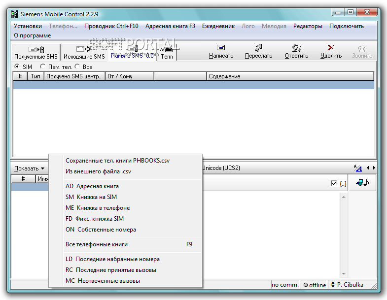 C помощью программы Siemens Mobile Control вы сможете узнать море информации о сети и самом телефоне (встроенный сетевой монитор), работать с папками и файлами в памяти телефона с помощью специального двухоконного файлового менеджера, полнофункциональная работа со всеми полями адресной книги, управлять органайзером, загружать и редактировать логотипы и мелодии (в том числе рисовать логотипы самому). Есть даже функция включения сервисного меню! При этом полностью поддерживается русский язык везде.