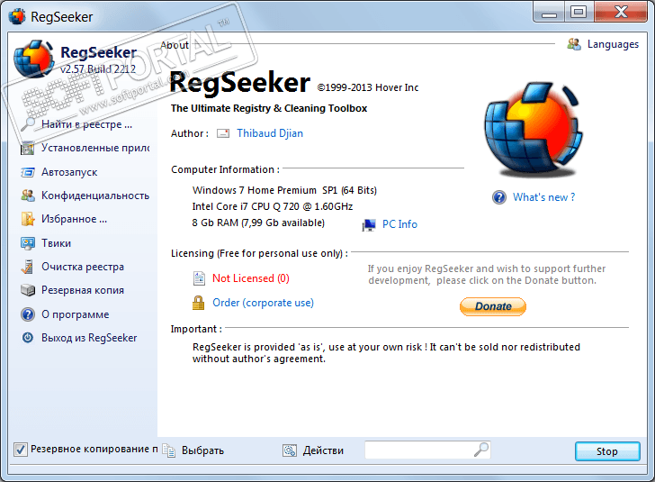 RegSeeker - небольшая системная утилита для полного контроля и управления реестром Windows. С помощью этой программы можно найти и удалить неиспользуемые или неверные ключи, что значительно уменьшит замусореность системы и, соответственно, поможет улучшить скорость работы ПК.