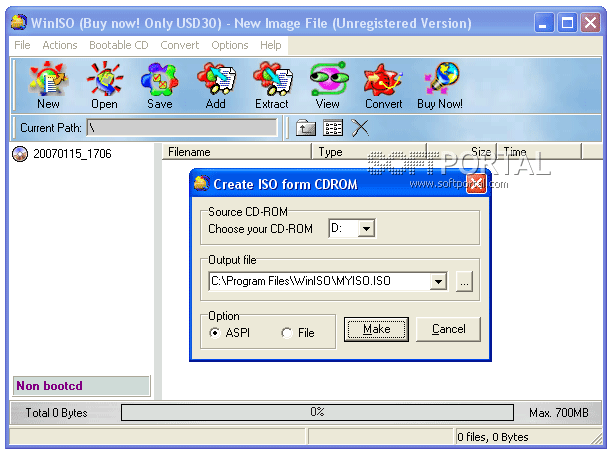 WinISO это утилита для работы с образами дисков CD-ROM. Позволяет конвертировать форматы BIN и ISO, извлекать/редактировать/создавать ISO-файлы, создавать загрузочные CD. Поддерживает множество различных форматов, возможно создание образа непосредственно с диска.