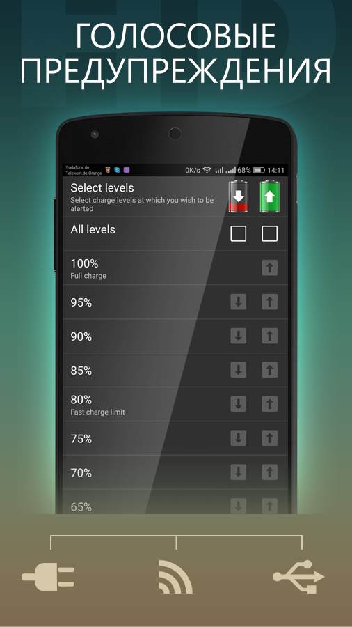 Приложение, которое уведомляет о полном или низком заряде аккумулятора. Поддерживает...