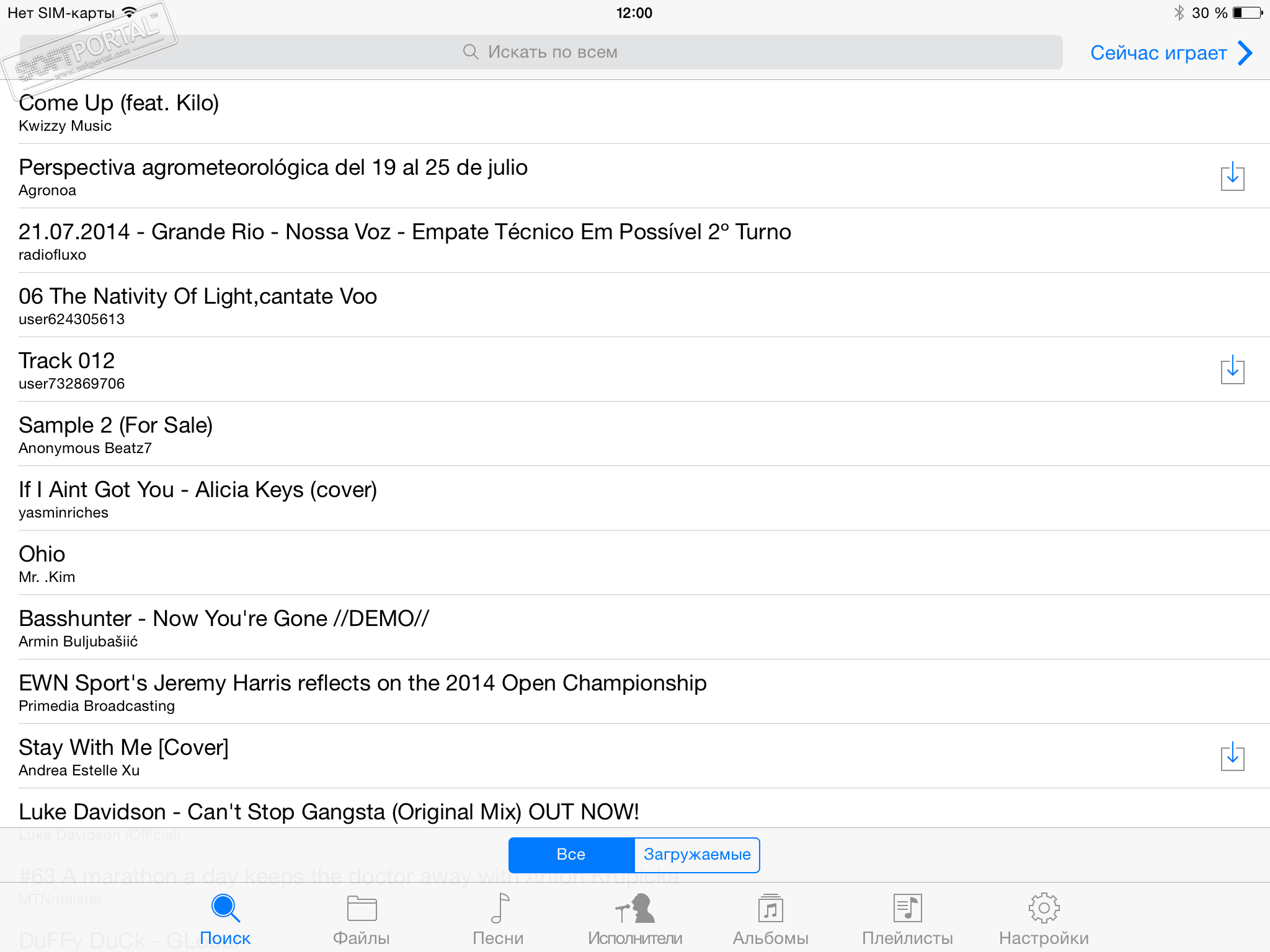 QWE Free Music Download PRO - бесплатный загрузчик музыки, использующий каталог аудиофайлов SoundCloud. В библиотеке SoundCloud содержится огромное количество композиций как отечественных так и зарубежных исполнителей, каждая из которых теперь доступна не только к прослушиванию в хорошем качестве, но и может быть загружена на Ваше устройство для использования вне зависимости от наличия интернет-соединения. Находить и скачивать музыку очень просто: в поисковой строке задайте название исполнителя или композиции, среди предложенных вариантов выберите нужный и нажмите на прямоугольник со стрелочкой справа от композиции - песня скачивается. Надо также отметить и достаточно высокую скорость загрузки аудио, пока будете вводить название следующего трека предыдущий уже будет на Вашем i-устройстве. Доступна загрузка и нескольких файлов одновременно.