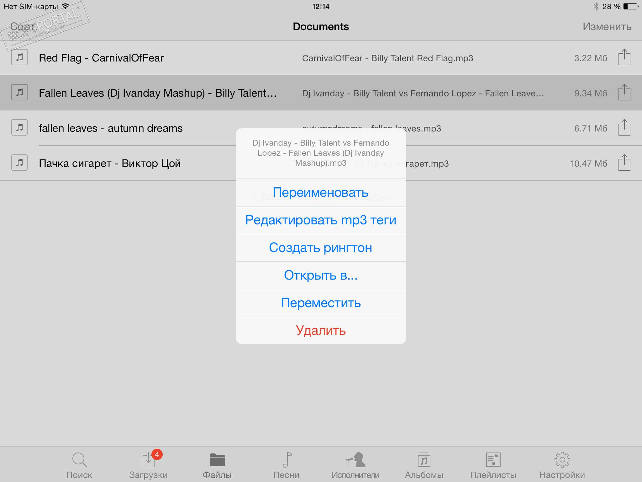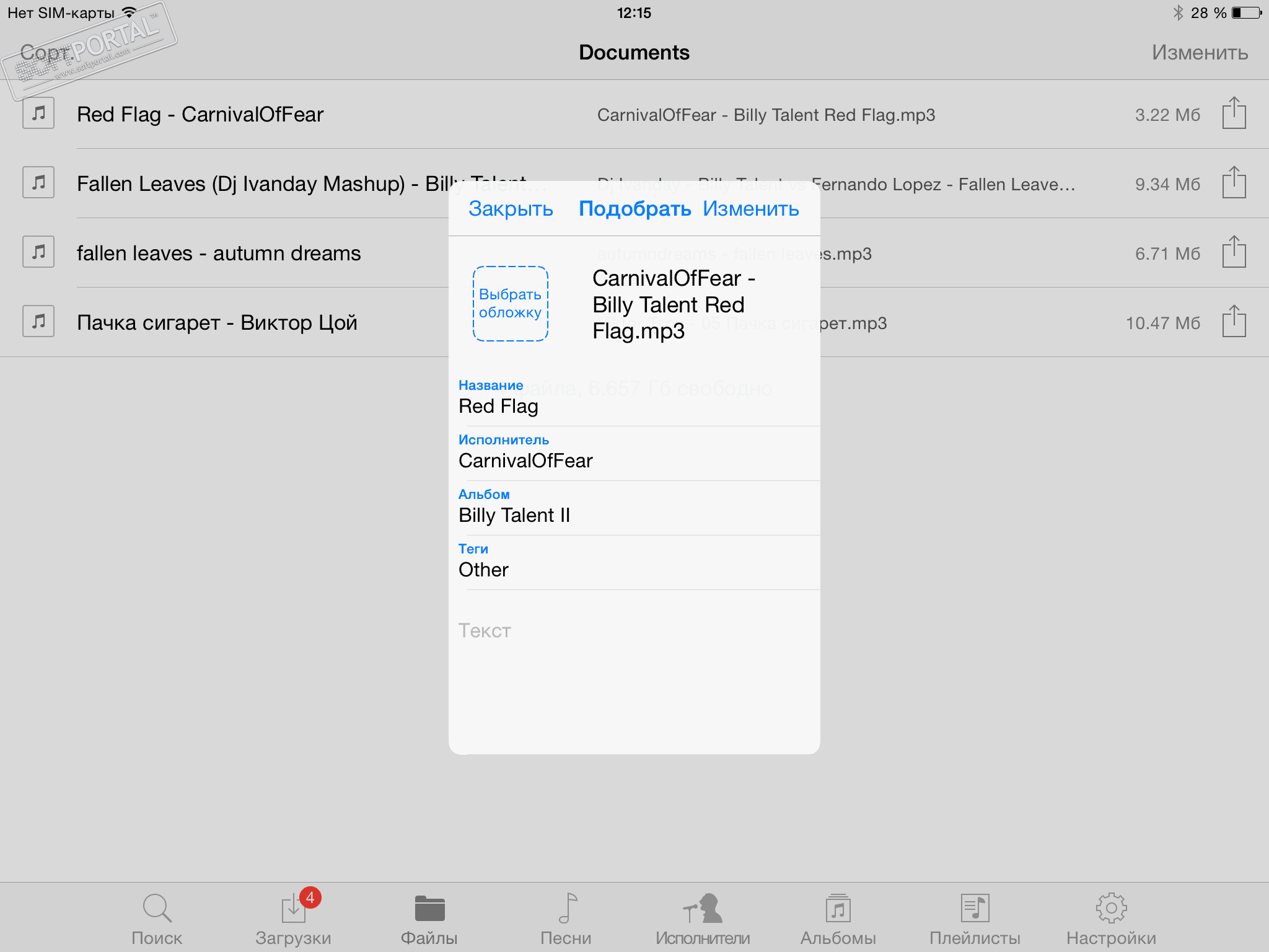 Для удобства использования все аудиодорожки удобно рассортированы по вкладкам Песни, Артисты, Альбомы, Плейлисты. При необходимости Вы сами можете переименовать скачанный контент по своему усмотрению, отредактировать теги, подобрать обложку и т.д. Вся музыка проигрывается встроенным плеером, который поддерживает форматы .m4v, .mp4, .mov, .mp3, .m4a, .wav, .caf, .pls, и др.