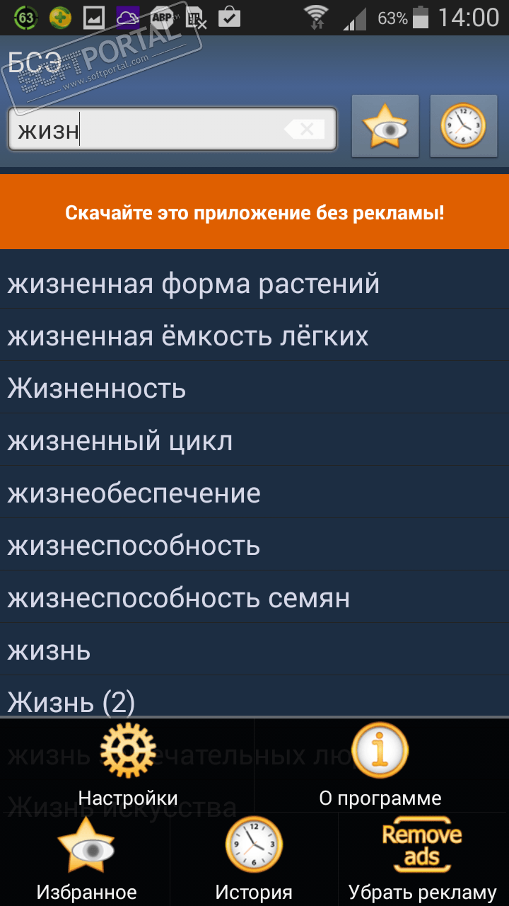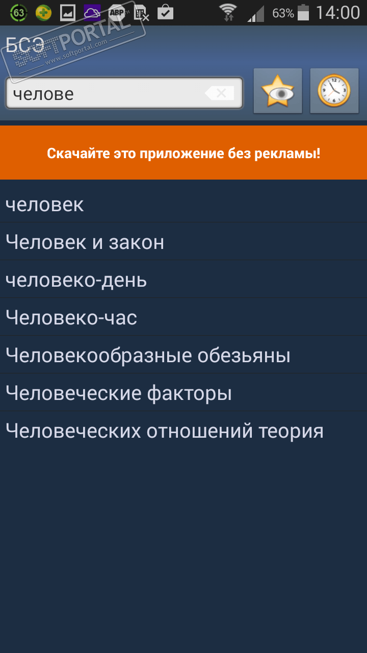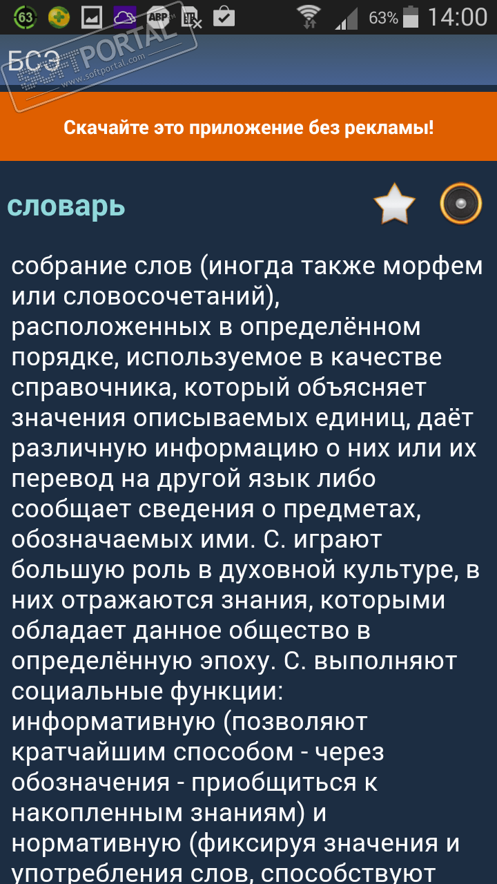 Большая Советская Энциклопедия - мобильная Большая Советская Энциклопедия для Android-смартфонов и планшетов, которая включает в себя более 95000 разнообразных статей. Присутствует возможность добавлять нужное слово в список избранного, просматривать историю, управлять списками Истории и Избранного, менять в настройках шрифт текста и тему.
