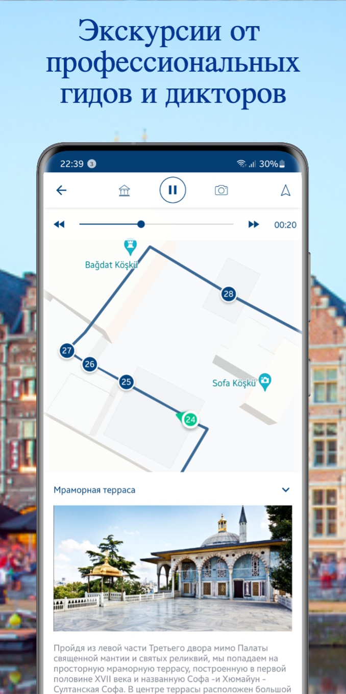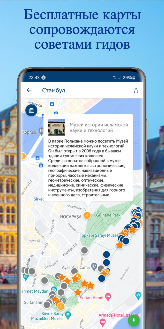 Azbo Audio Tour - удобное приложение для Android, которое будет полезно пользователям, готовящимся к самостоятельному путешествию в различные туристические столицы, как например Лондон, Париж, Рим, Берлин, Барселона, Вена, Венеция, Амстердам, Прага, Флоренция, Милан, Гамбург, Севилья, Токио, Стамбул и др. Благодаря программе Вы не пропустите ни одно из общеизвестных достопримечательностей, которые для удобства выделены на карте желтой звездой. Azbo Audio Tour позволяет получить дополнительную практическую информацию о местных традициях и особенностях. Присутствуют встроенные оффлайн карты.