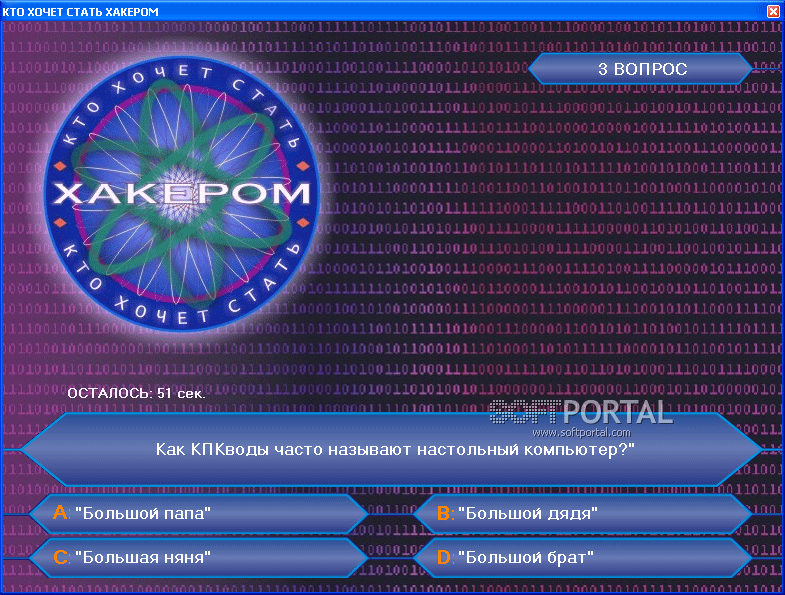 Во время игры Кто хочет стать хакером? вы можете пользоваться подсказками.