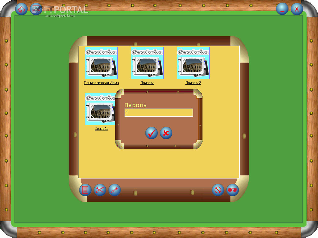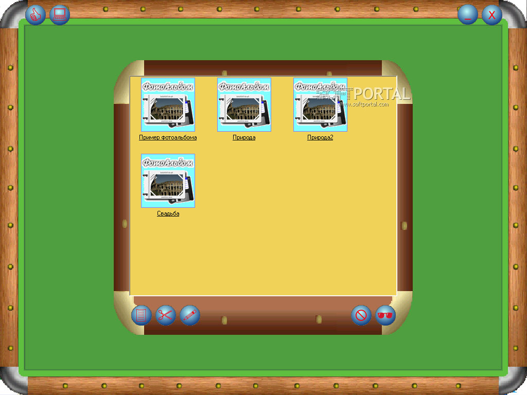 ФотоАльбом предназначен для систематизированного хранения изображений в виде альбомов. Изображения формата jpeg объединяются в один mpeg-файл (альбом). Возможности: создание нескольких альбомов, закрытие их паролем, экспорт изображений из альбомов, просмотр в режиме слайд-шоу, масштабирование и вставка подписей к фотографиям, добавление звукового фона и многое другое.