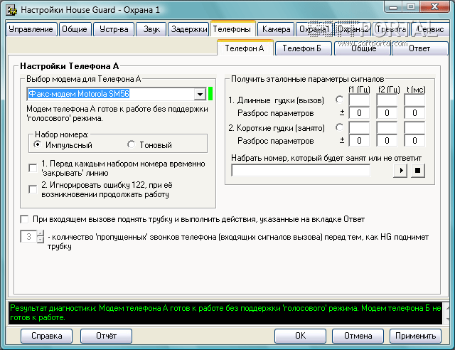 Кроме основного предназначения программы она может использоваться в качестве только АВТООТВЕТЧИКА или (и) АВТОПРОЗВОНКИ (передача речевых сообщений через модем).