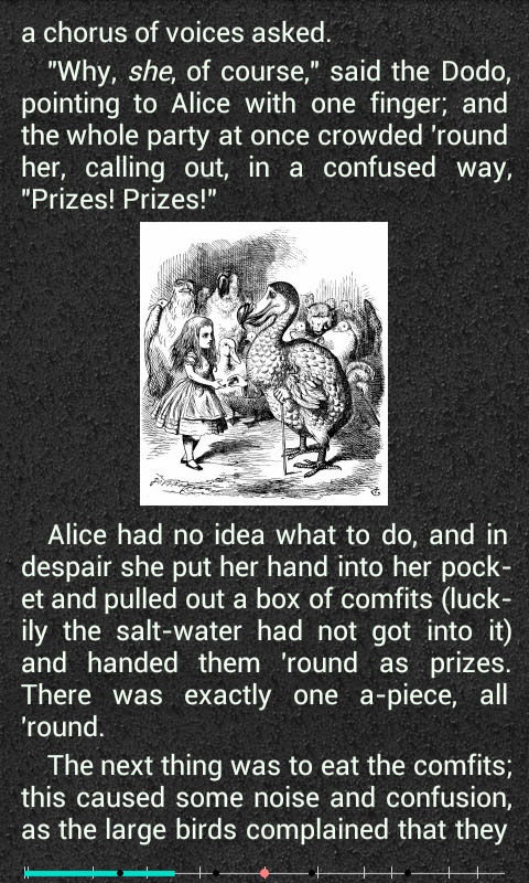 AlReader - программа для чтения книг, текстов, HTML-страниц и других текстов в полноэкранном режиме. Поддерживается множество популярных форматов файлов, такие как FB2, EPUB, HTML, CHM, TXT, RTF, PDB/PRC, DOC, DOCX, ODT, SXW, ABW и другие.