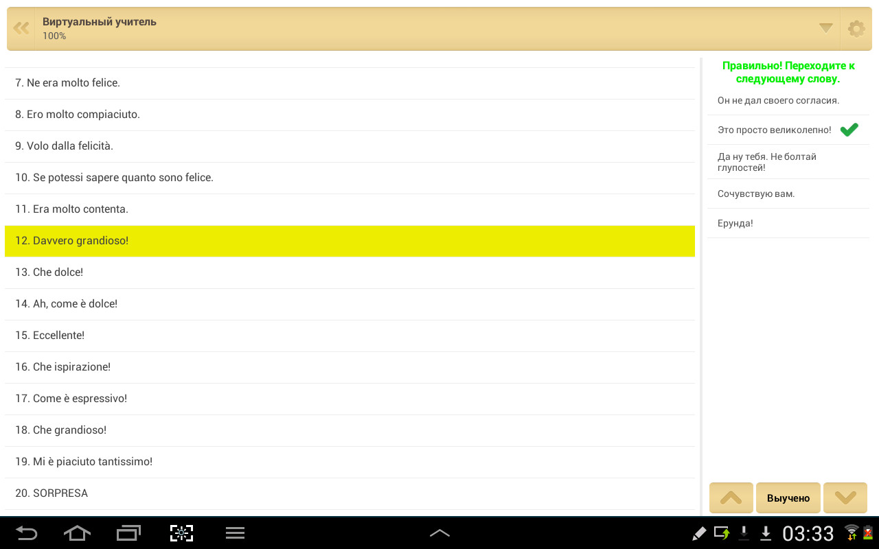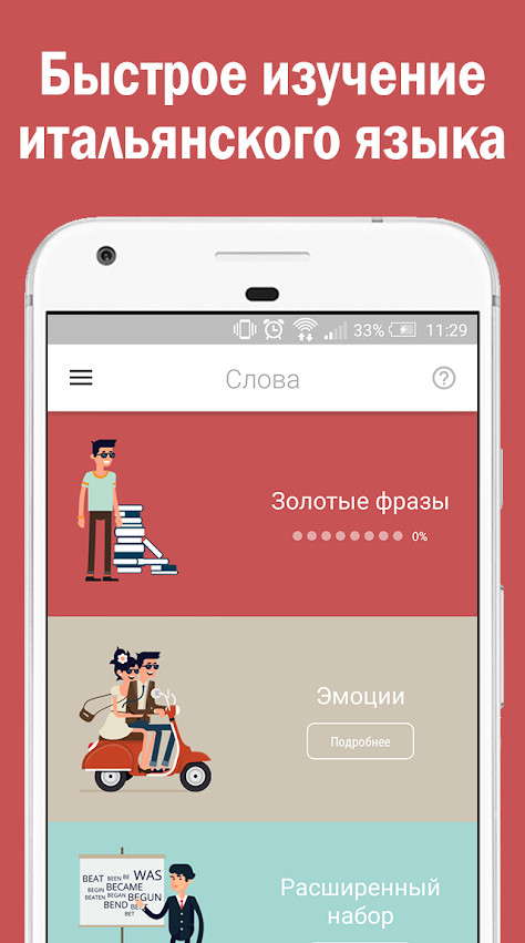 Слова Бегом Итальянский язык - полезное приложение для пользователей Android-смартфонов и планшетов, которое позволяет владельцу изучать итальянский язык в любом месте и в любое удобное для него время.