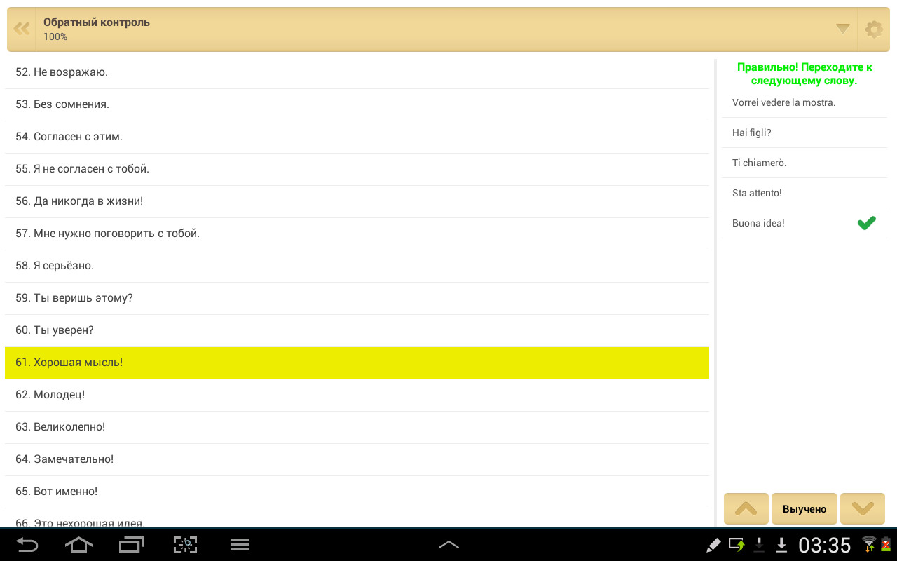 Слова Бегом Итальянский язык для Android