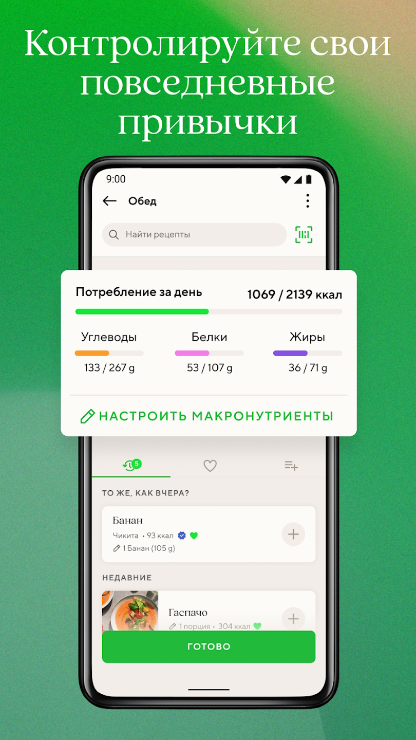 - Поддержка наиболее популярных диет.