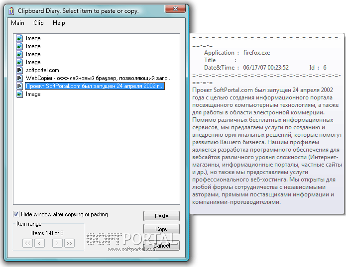 ClipDiary - это бесплатная утилита предназначенная для ведения истории содержимого буфера обмена.