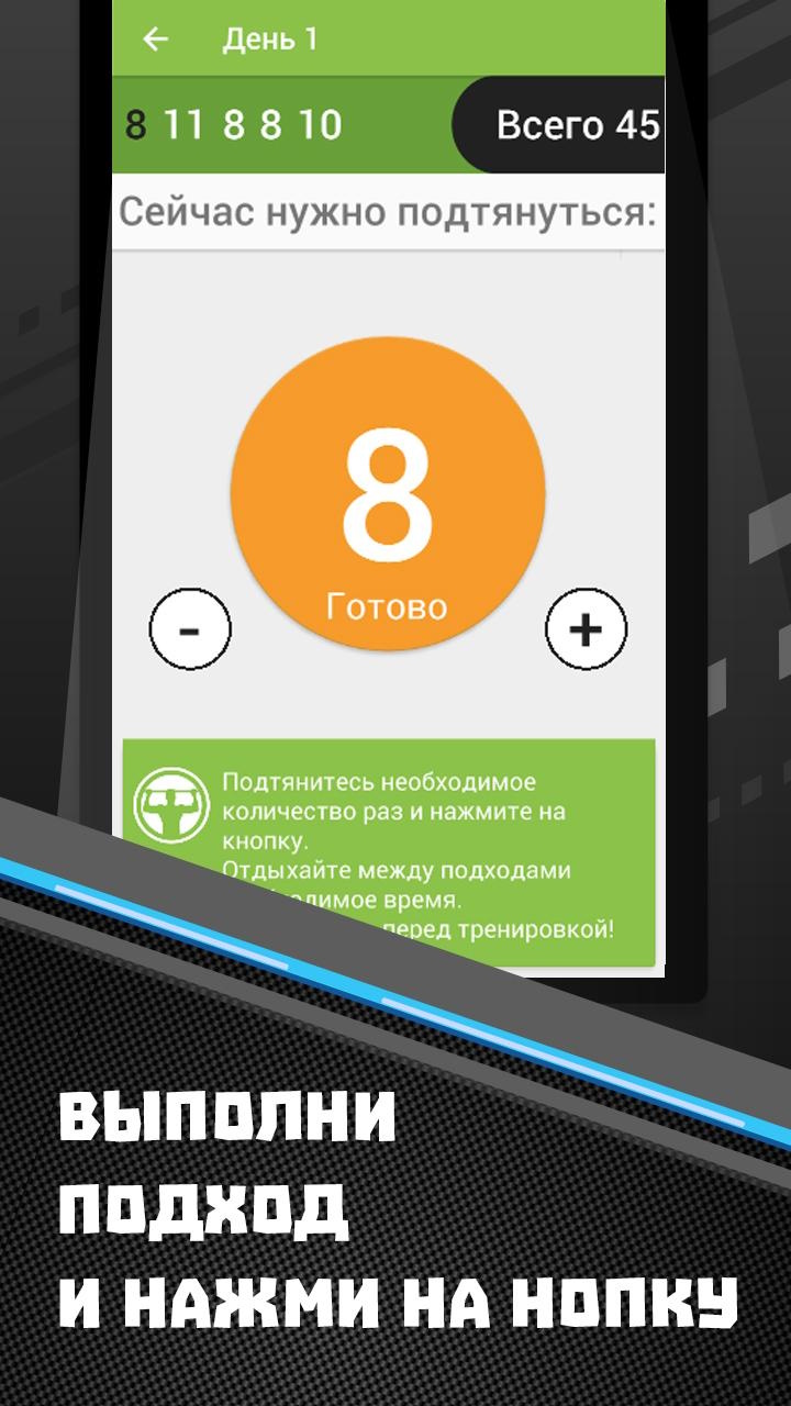 Данный курс рассчитан на максимум 50 подтягиваний. Конечно чтобы достичь таких результатов придется серьезно поработать, но это не фантастика, а вполне реальный показатель. С приложением 50 подтягиваний. Будь сильнее организация тренировок станет намного проще и продуктивнее: просто следуйте указаниям приложения и уже буквально через неделю Вы ощутите результат.