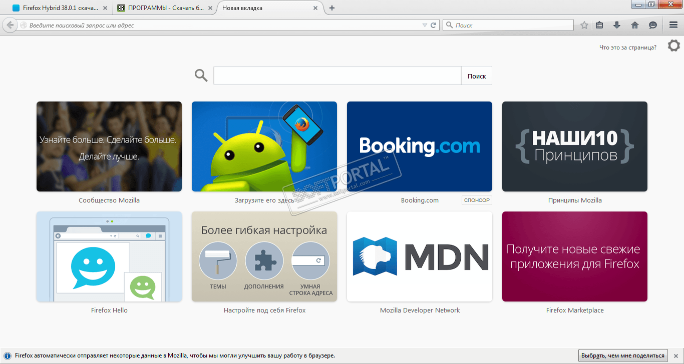 Firefox Hybrid - портативная сборка на основе браузера Firefox, которая не содержит рекламные модули и собрана без интеграции сторонних компонентов и утилит. Другими словами это чистая мультипрофильная сборка для обычного пользователя, а все остальное оставлено на усмотрение пользователя. Отличается скоростью, удобством, безопасностью, защищённостью, стабильностью, многорежимностью.