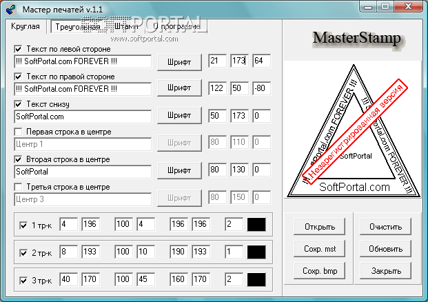 MasterStamp - Программа для создания печатей (круглой, треугольной и прямоугольной). Вы можете...