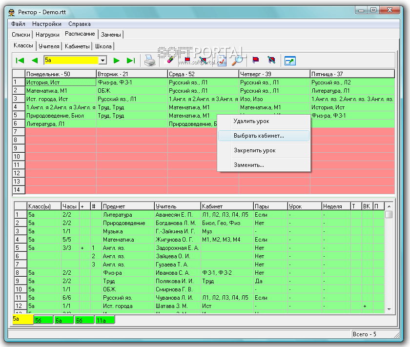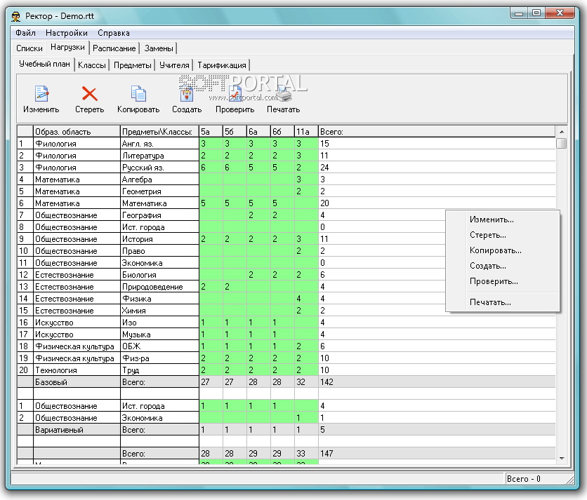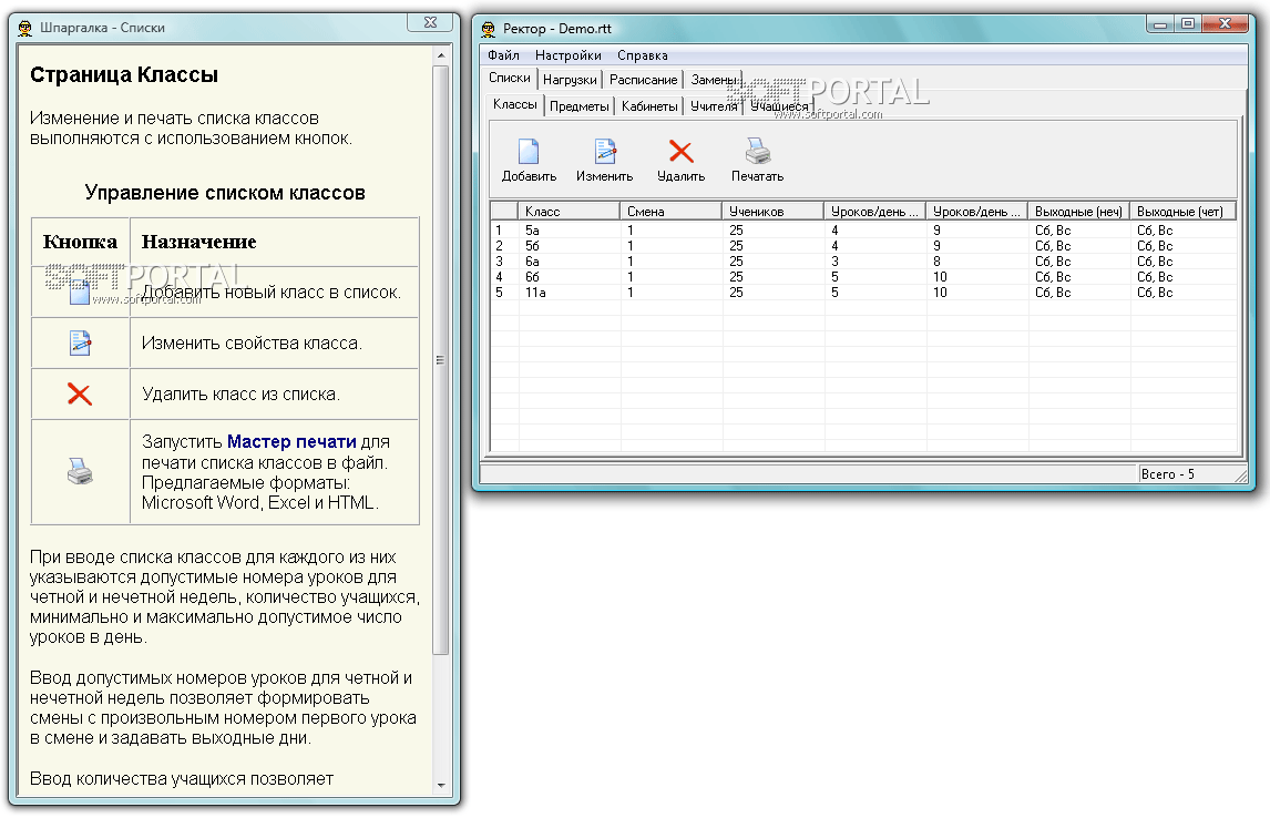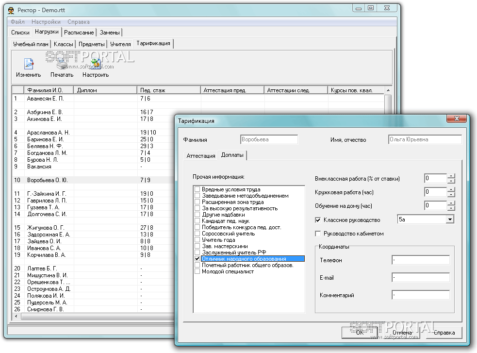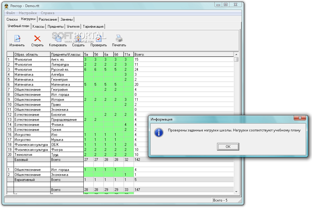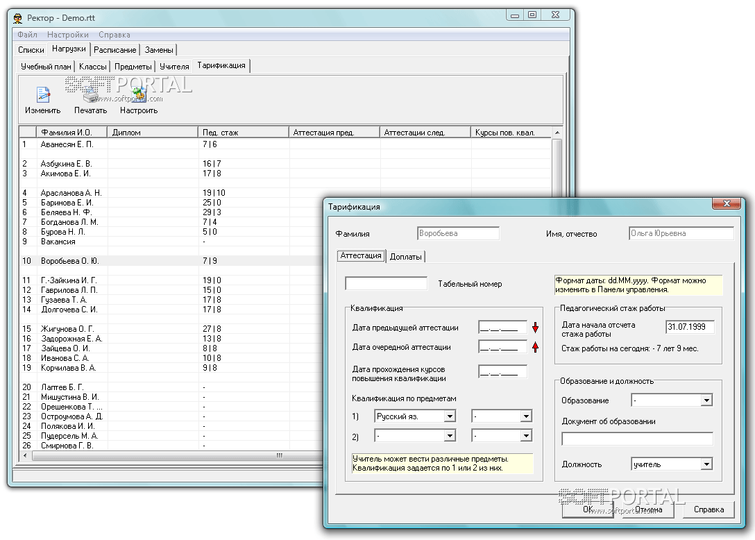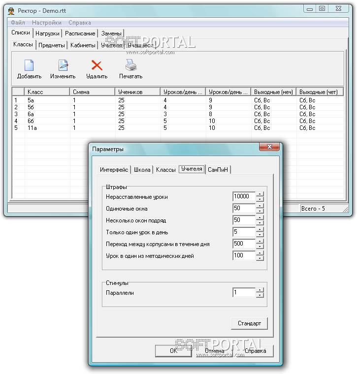 Ректор - каноническая программа для составления расписания занятий/уроков в общеобразовательных школах с учетом СанПиН, тарификацию учителей c учетом стажа и данные об ОУ для ЕГЭ. Успешно применяется в более чем 1500 школах России и стран ближнего зарубежья.