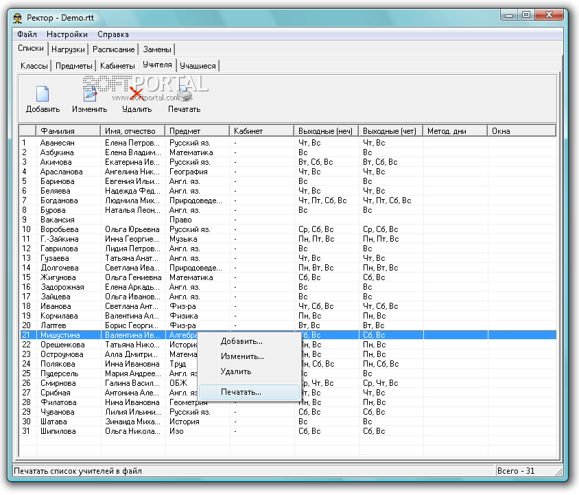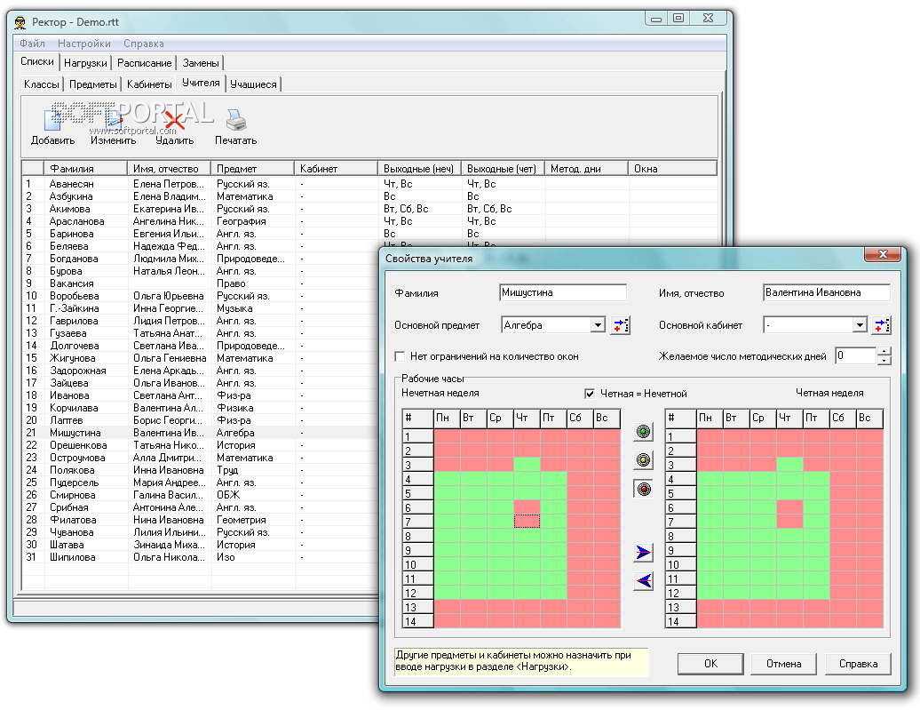 Ректор - каноническая программа для составления расписания занятий/уроков в...