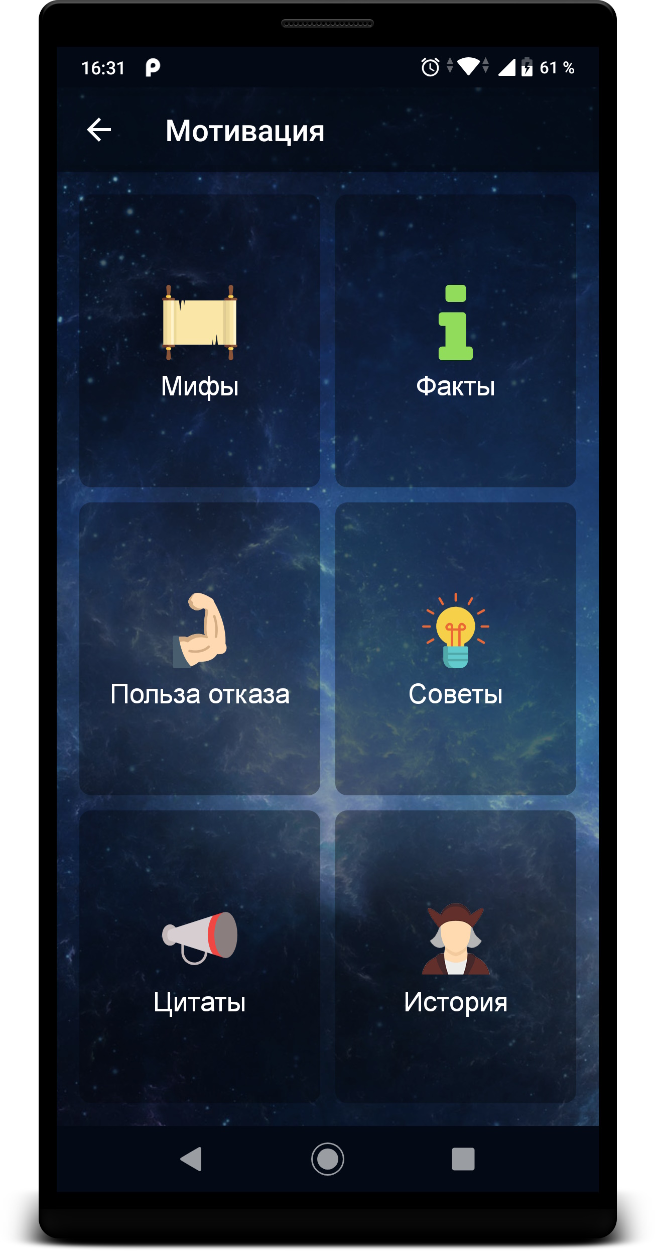 Не курю! - бесплатное приложение для Android-смартфонов и планшетов, которое будет будет полезно пользователям решившим отказаться от табакокурения.