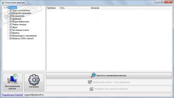 Очиститель реестра - портативная утилита, предназначенная для наведения порядка в реестре системы. Поможет выявить и устранить распространенные проблемы реестра, такие как некорректные ключи, отсутствующие файлы или каталоги, пустые ссылки, неиспользуемые расширения и многое другое, что приведет к улучшению стабильности работы операционной системы. Можно выбрать разделы реестра, которые следует проверить на предмет ошибок и необходимости очистки (по-умолчанию включены все разделы).