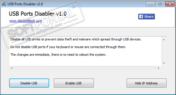 USB Ports Disabler - простенькая утилита для быстрого включения/отключения портов USB на своем ПК. Это может пригодиться для предотвращения кражи данных с компьютера или заражения системы вредоносными программами, которые могут распространяются посредством USB. Программа отключает службу USBSTOR, что не позволяет Windows обнаруживать и идентифицировать USB-устройства, подключенные к компьютеру.